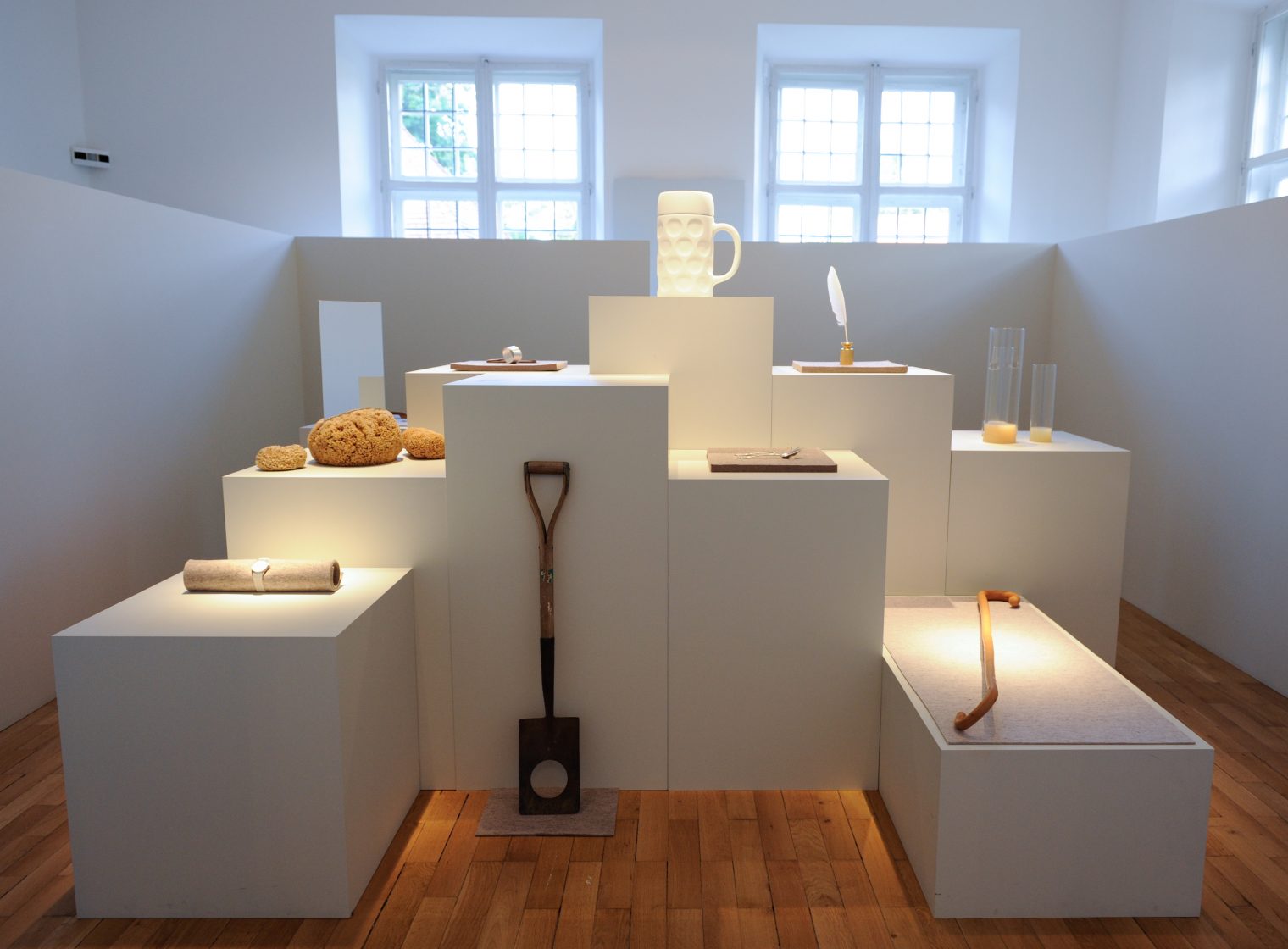 Alongside other works from Sach’s works a hand-crafted, one-litre Maß tankard was produced for Nymphenburg Porzellan Manufaktur in Munich was presented. The work celebrates the brewing traditions in Germany, while drawing attention to this unnoticed, yet familiar object. Often used boisterously, the use of white biscuit porcelain belies its traditional function and calls for the viewer to respond to its pure form, free of practical purpose. The work forms part of Nymphenburg’s “Edition” collection.