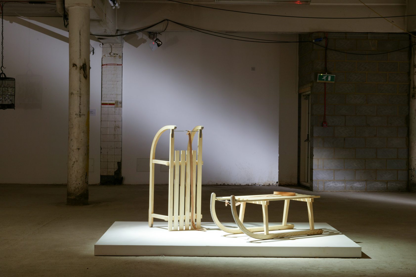 The duality exhibition looked at the conflict between function and perception; repositioning familiar objects in new contexts. Works included lights, chairs, and sledges.