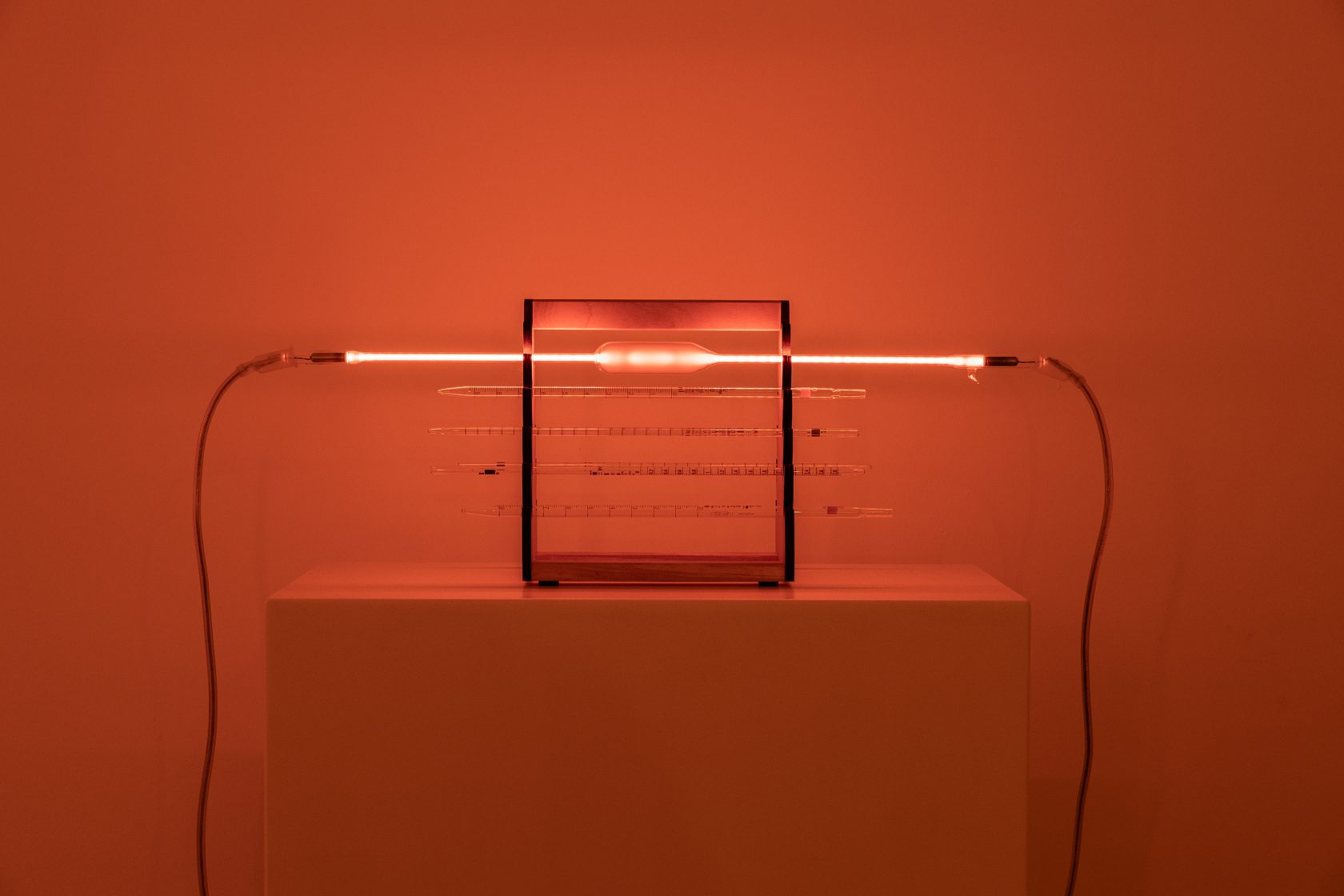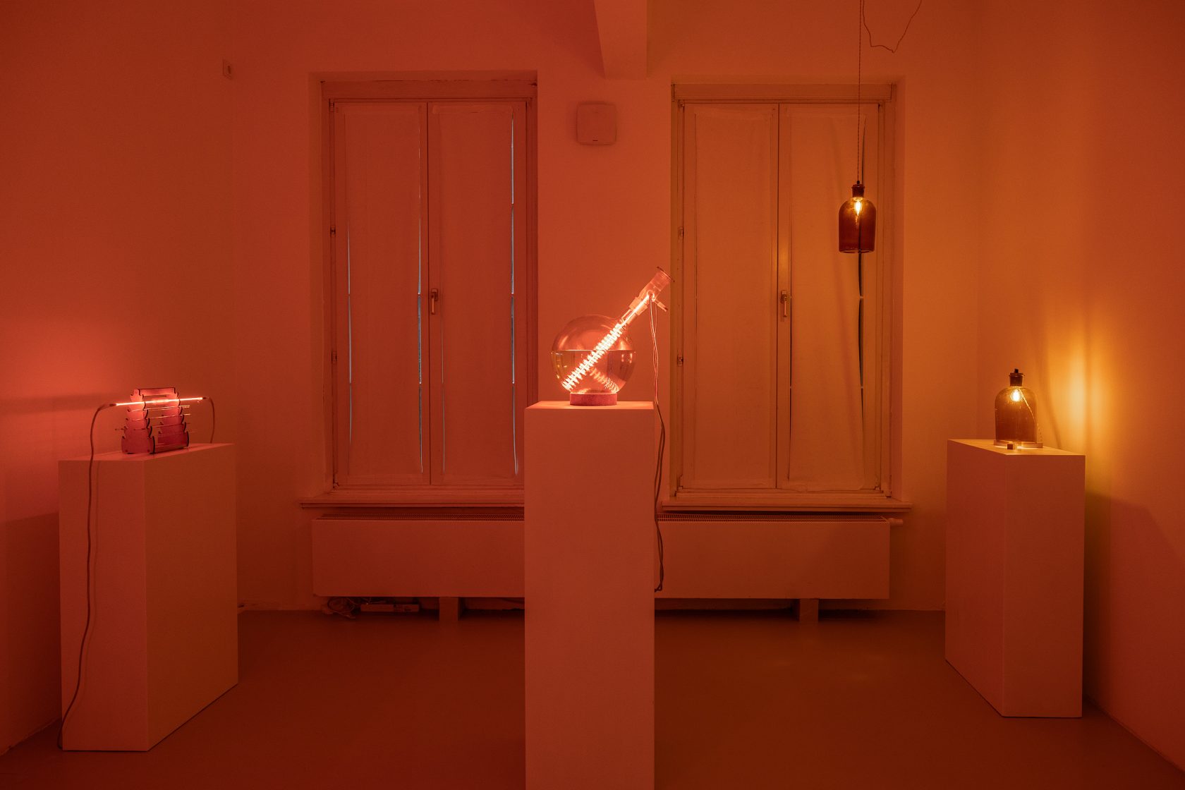 Rolf Sachs presents artworks that exclusively explore the theme of light in diverse ways. The artist takes a retrospective approach, spanning his entire artistic career in this field. The exhibition features both well-known artworks, such as the sculpture “Rita,” and new, previously unseen pieces. Sachs utilizes various media for his 14 works, ranging from installations to light photography. He employs everyday objects in a characteristic playful and humorous manner, enriching them with a deeply emotional dimension.”Eingemachtes” (German for “preserves”) cites the aesthetics of everyday, familiar objects and places them in a new, surprising context.