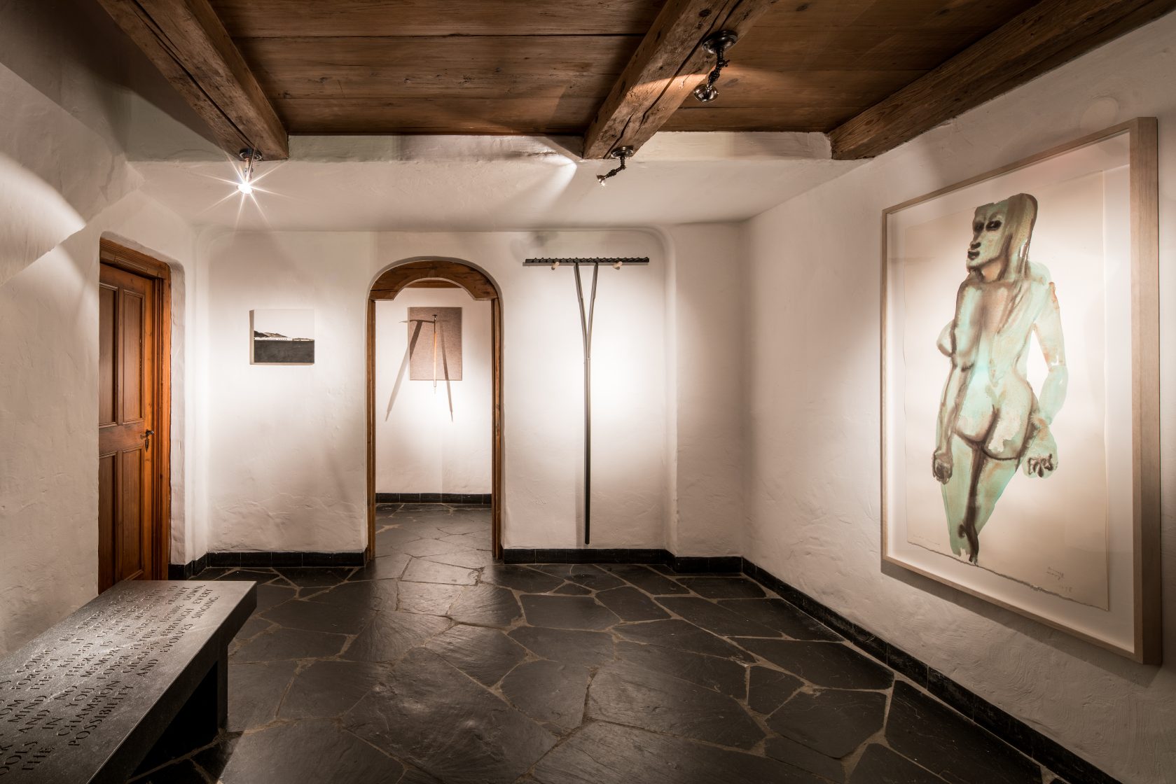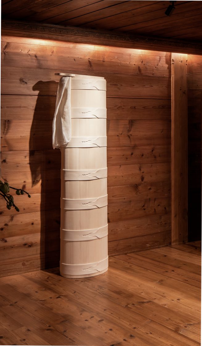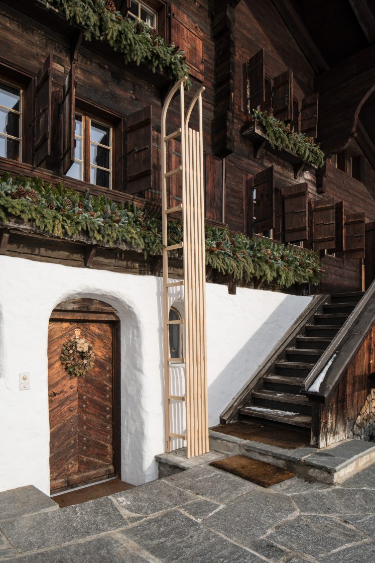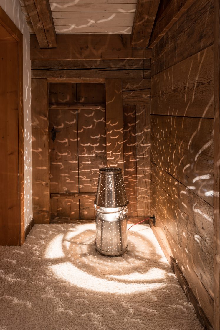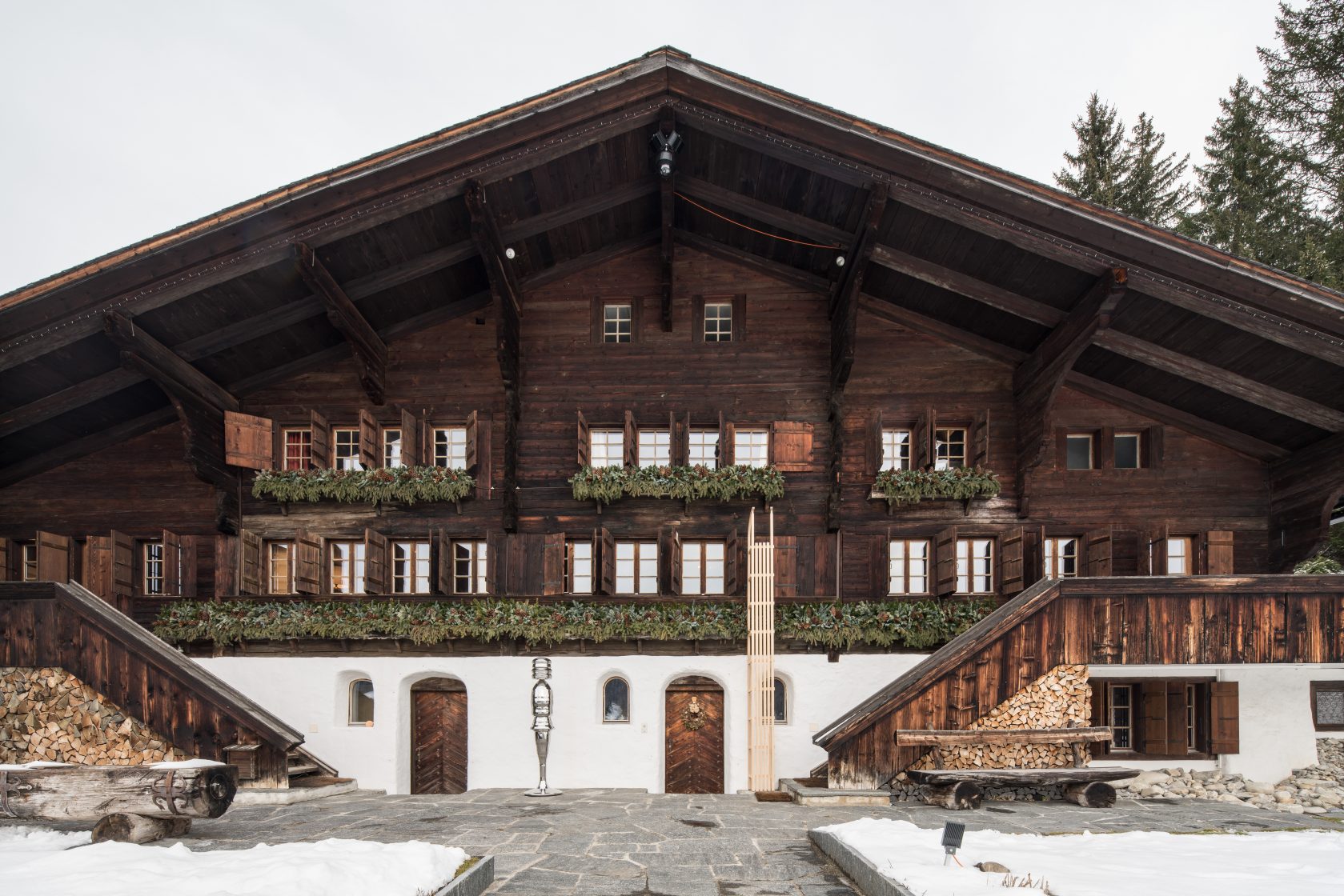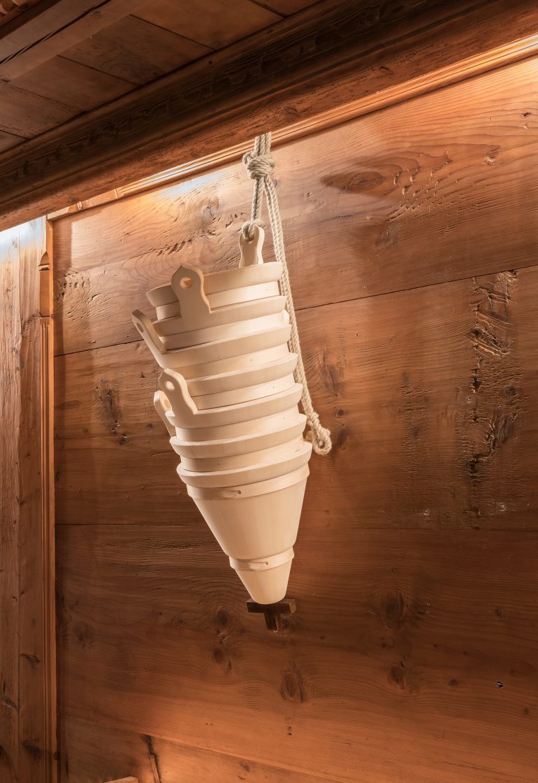 The pieces from this series are a reflection on alpine history, culture, and craftsmanship and made with the help of traditional craftsmen – such as carpenters who produce traditional alpine dairy tools, paper cut artists, and regional stone cutters. This new series of works was shown alongside some iconic pieces at the Vieux Chalet in Gstaad (Switzerland) in collaboration with Hauser & Wirth. The exhibition featured sculptures, portraiture and a large-scale site-specific installation on the exterior.