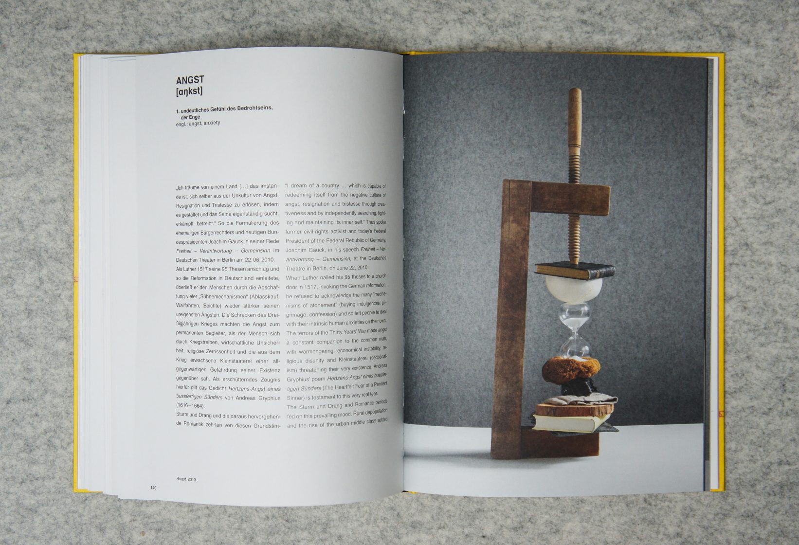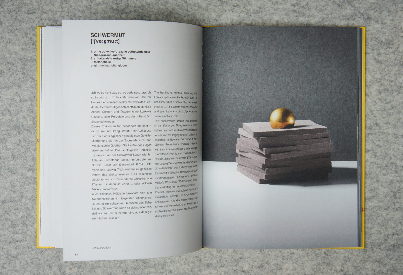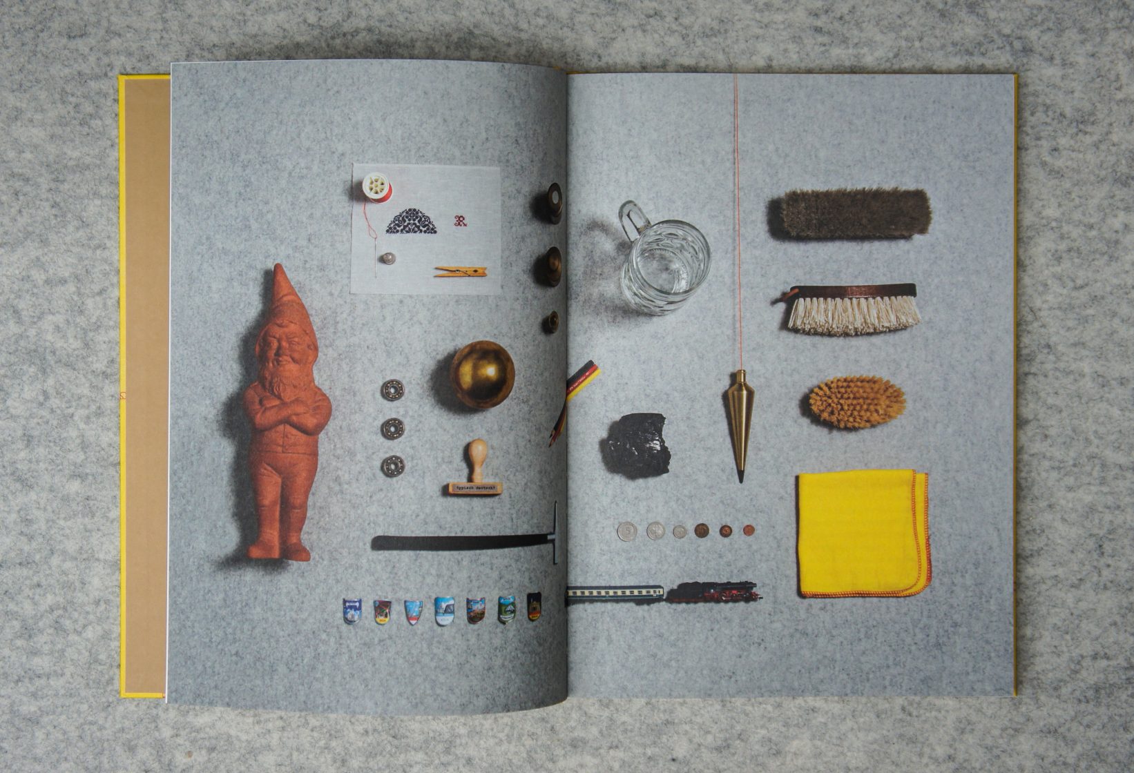 What is typically German? Is it really the love of lawn gnomes, “Gemütlichkeit”, and beer? Are the Germans neat freaks, the champions of orderliness and rigid cleaning schedules, a nation unrivaled in its devotion to the virtues of punctuality and conscientiousness? A lawn gnome in a minework’s uniform hewn out of anthracit coal; a bronze-cast tower of books rising to a height of more than thirteen feet that bears the title ‘der unendliche Geist’ (the infinite spirit); and a brass plummet magnified to a multiple of the original size that stands for “precision” – these are only three of the works Rolf Sachs presents in his book typisch deutsch?. Inspired by the diversity of German culture and the particular qualities as well as stereotypes associated with it, the London-based artist Rolf Sachs takes an analytical look at ideas such as tidiness, wanderlust, attachment to the native soil, melancholia, and sociability. He interprets them in multifaceted, subtle, and sometimes humorous ways, visualizing what he finds in singular objects and installations on display in his exhibition. Balancing between art and design, the pieces solicit the viewer’s curiosity and encourage him to see things with fresh eyes and reflect on the German mentality and its peculiarities.