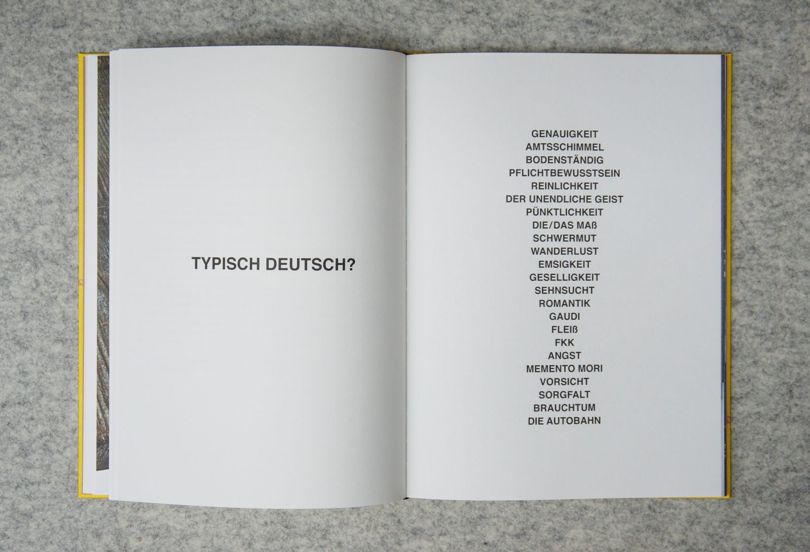 Was ist typisch deutsch? Ist es wirklich die Liebe zum Gartenzwerg, zur Gemütlichkeit und zum Bier? Sind die Deutschen die reinlichen Verfechter von Ordnungsliebe und Kehrwoche, die die Tugenden der Pünktlichkeit und des Pflichtbewusstseins pflegen wie keine zweite Nation? Ein Gartenzwerg in Bergmannskluft, der aus Anthrazitkohle gemeißelt ist, ein über vier Meter hoher, aus Bronze gegossener Bucherturm, ‘Der unendliche Geist’ genannt, und ein mehrfach vergrößertes Messing-Lot, das für „Genauigkeit“ steht – das sind nur drei der Arbeiten, die Rolf Sachs in dem Buch „typisch deutsch?“ vorstellt.
