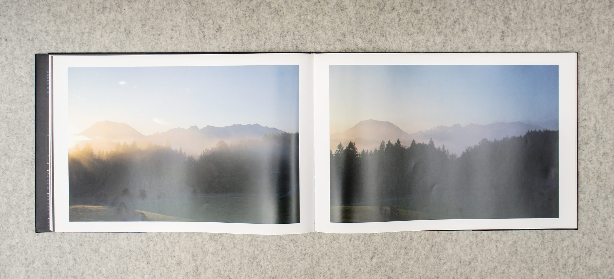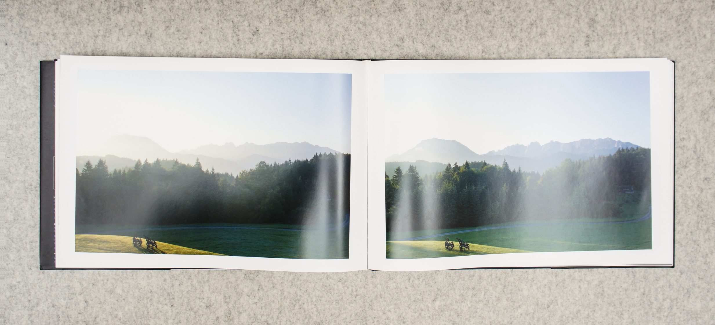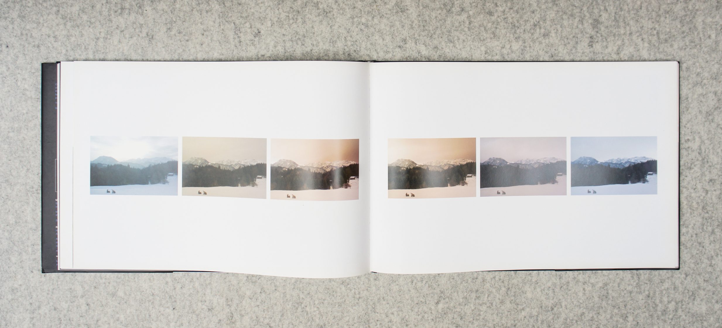 A series of panoramic photographs were taken of an alpine view from the balcony of a mountain lodge called the Rechenau, near Kiefersfelden in Bavaria. Maryam and Rolf Sachs focused the camera on two majestic mountain peaks, ‘Der Zahme Kaiser’ (The Tame Emperor) on the left and ‘Der Wilde Kaiser’ (The Wild Emperor) on the right, that lie over the German border in Austria. The discipline for the project was rigorous; the camera, which was housed in a purpose built shelter, shot over 50,000 photographs throughout 2004 , one shot taken every 10 and half minutes. The pictures succeed in capturing the ever changing moods of nature.