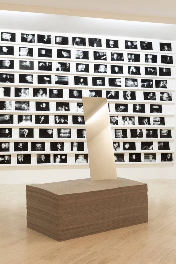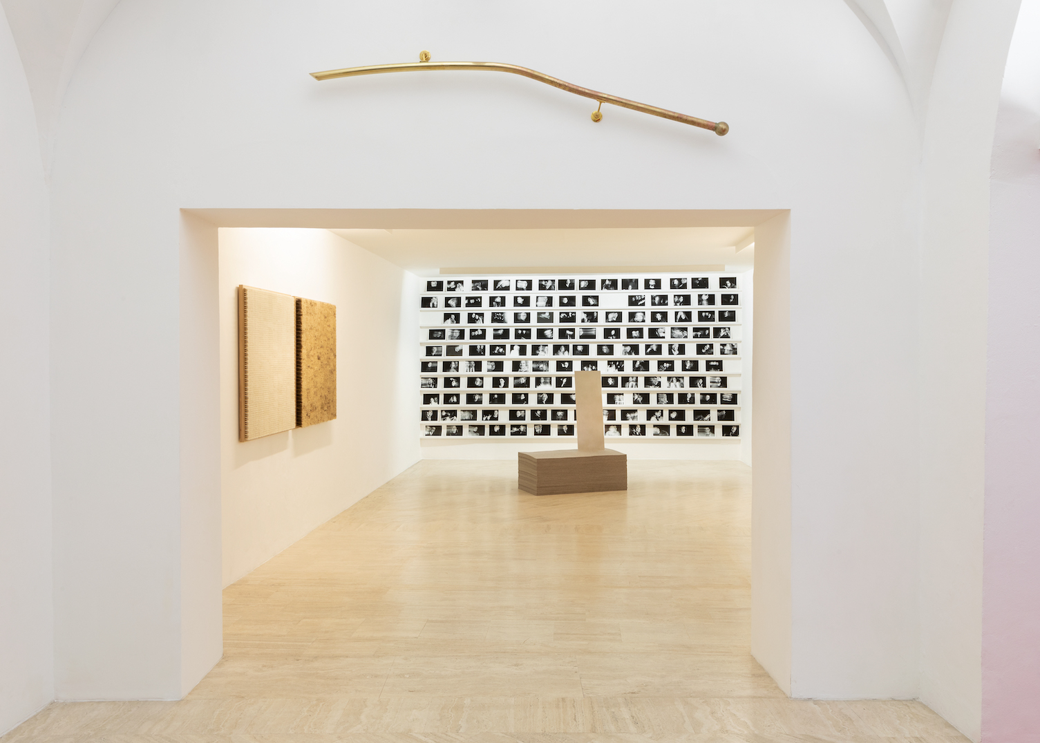 In line with a certain notion of new realism the felt and steel bench pivots around simple assemblies, somehow archaic. Absorbing reflection relies on the physical reality of gravity and friction, and combines contrasting concepts and opposites, while it invites the viewer to physically enter the work, interacting with its materiality.