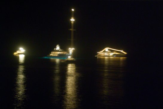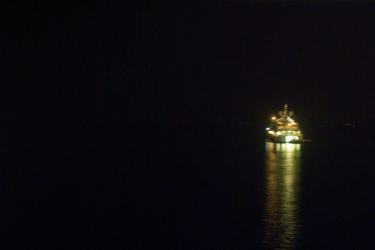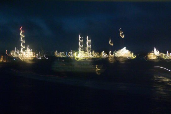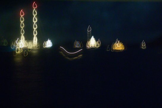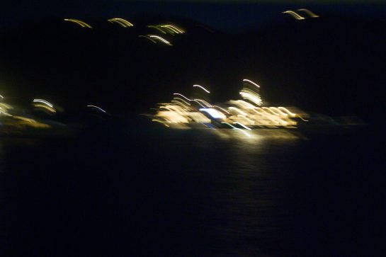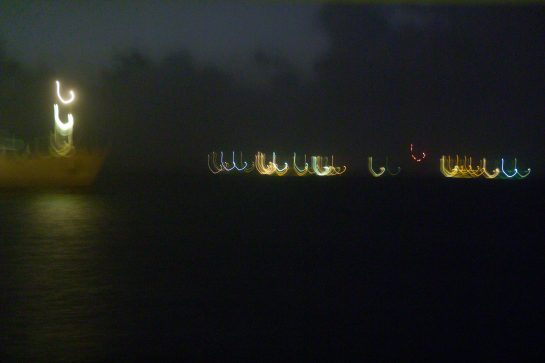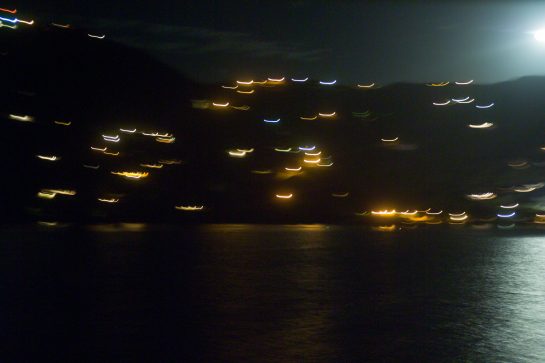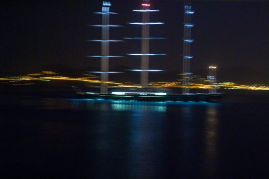 This project – two years in the making between 2006 – 2007– places a camera on the bow of the ‘Amazon Express’ boat, owned by Jean Pigozzi . This converted trawler traveled across the world, sailing through the Mediterranean, the Atlantic, the Panama Canal and along the Pacific coast. The camera captured an image every ten minutes, creating a wealth of unexpected photographs, capturing fleeting moments of water and light.