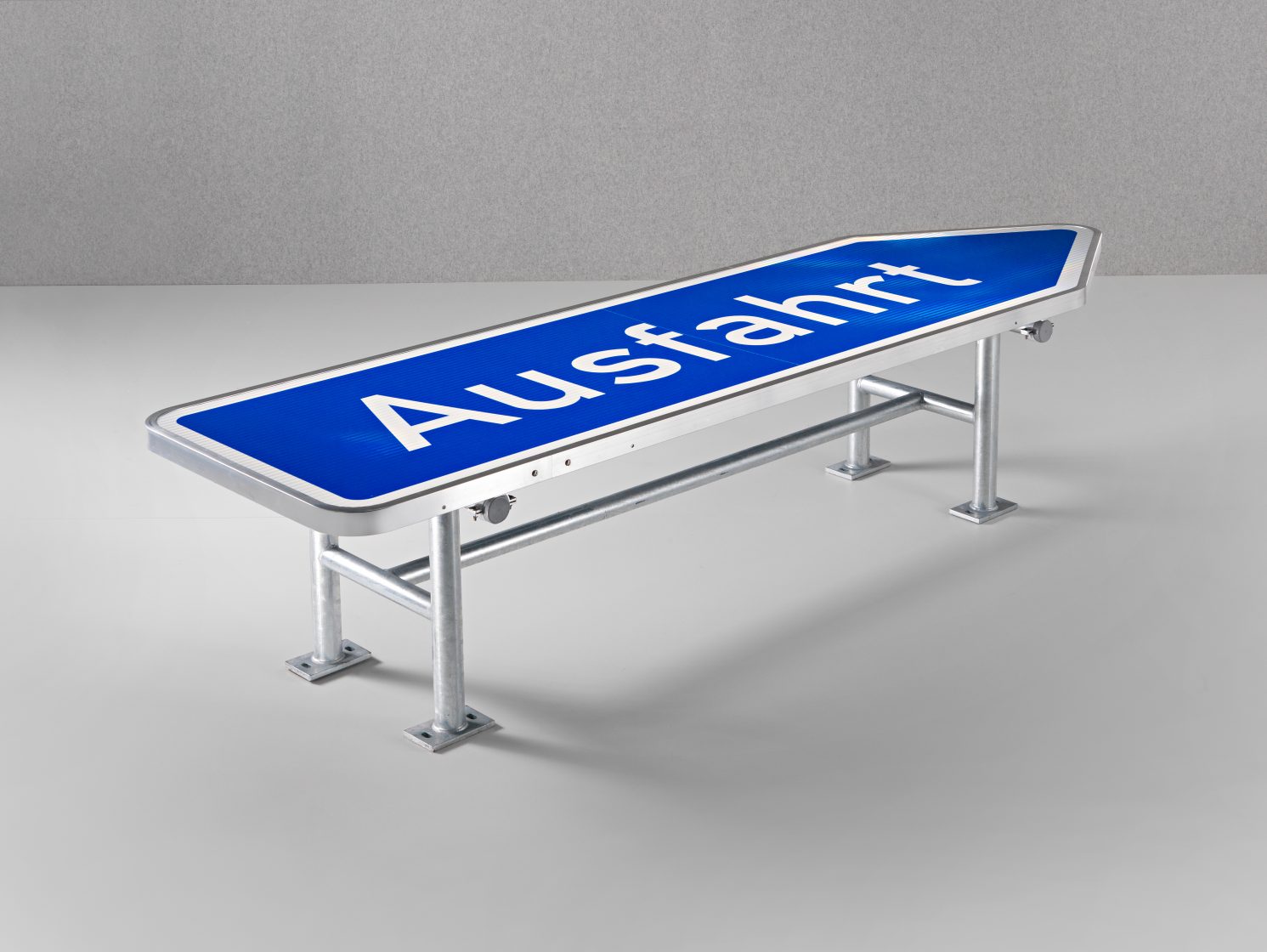 This table, made from a giant “Ausfahrt” (exit) sign from a German motorway, illustrates an affection for the everyday object; the often overlooked and under-appreciated designs and archetypes we encounter in our daily lives.