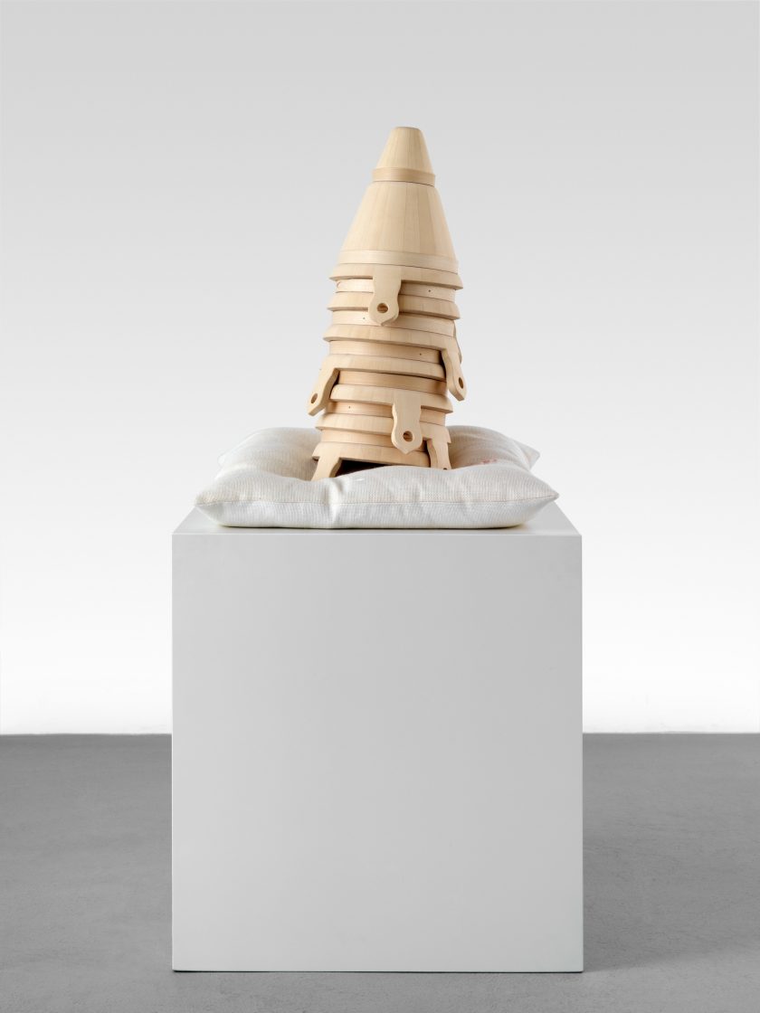 This piece forms part of the alpine 2 exhibition, where Sachs reflects on alpine history, culture, and craftsmanship. This new series of works was shown alongside some iconic pieces at the Vieux Chalet in Gstaad (Switzerland) in collaboration with Hauser & Wirth. The exhibition featured sculptures, portraiture and a large-scale site-specific installation on the exterior.