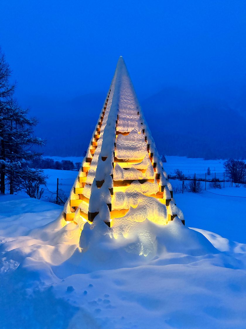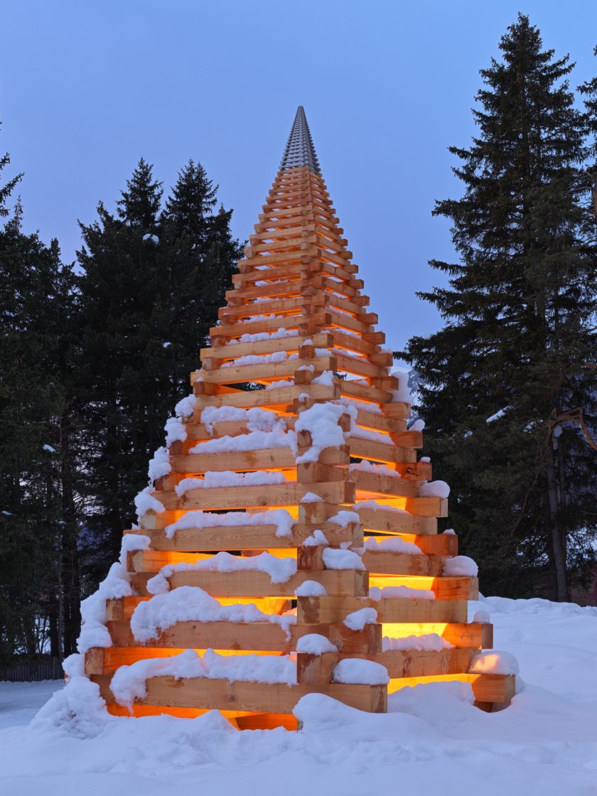 5.50 metre larch wood sculpture with stainless steel tip