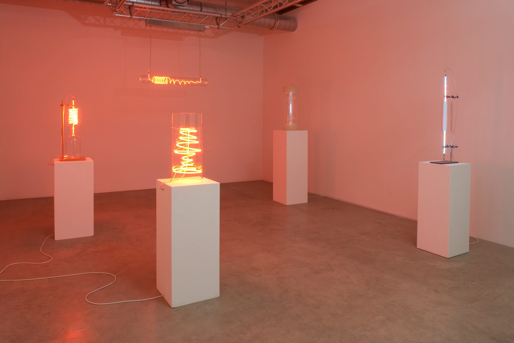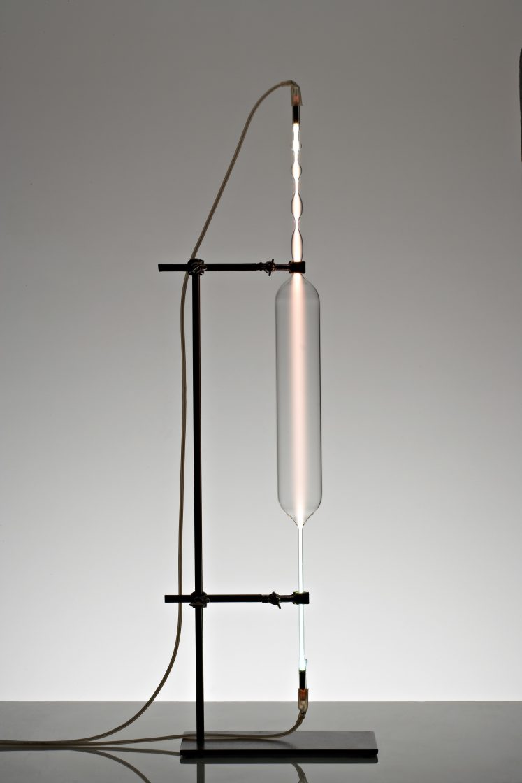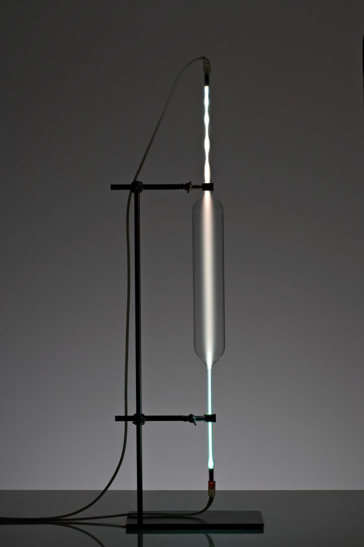 The piece forms part of the neon series where a scientific investigation of the limits of argon and neon are combined with the skills of an expert glassblower, to create works made from scientific glassware that challenge our preconceptions of what the gases are capable of.