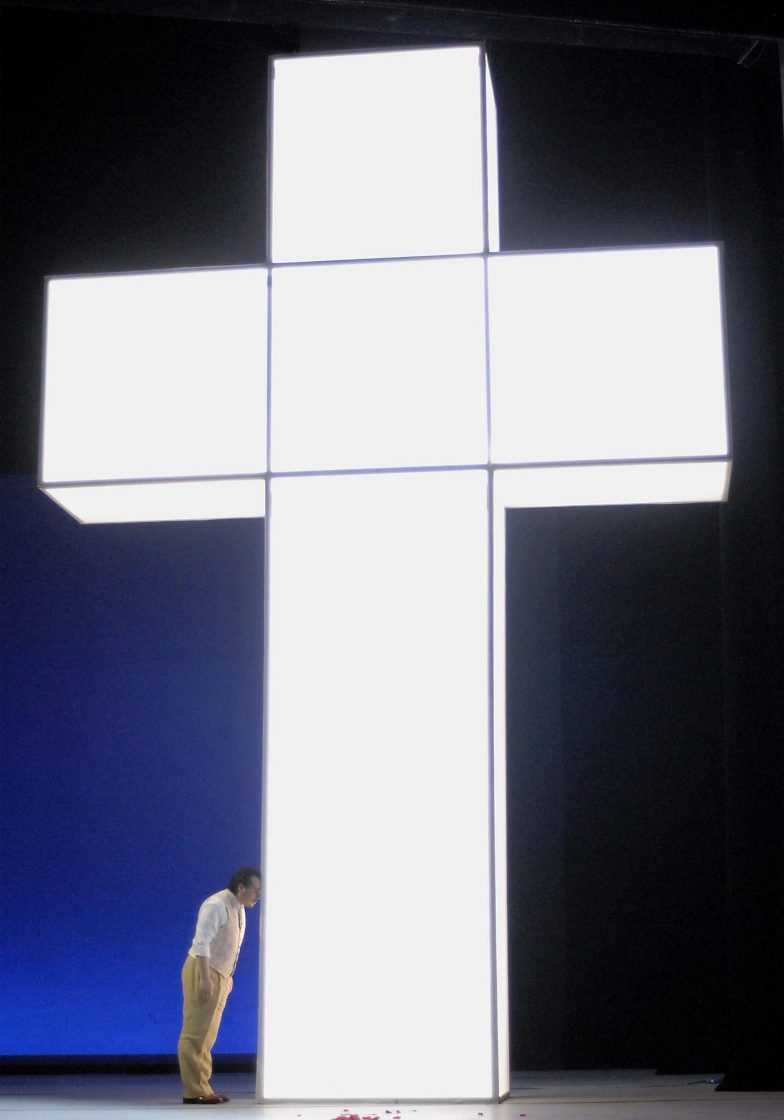 The stage design for the Hessisches Staatstheater Wiesbaden production of Faust evokes an atmosphere of minimalism, scarcity and symbolism, in direct contrast to traditional stage dressing. Here, decoration is shunned in favour of a bold approach, where light plays a vital role, becoming a character in itself; illuminating the conceptual designs scattered across the stage, from neon lights to an imposing chair made of folds of muted felt, representing Faust’s descent in to the devil’s clutches. Sachs employs his own conceptual aesthetic to create a design of power and emotional resonance.