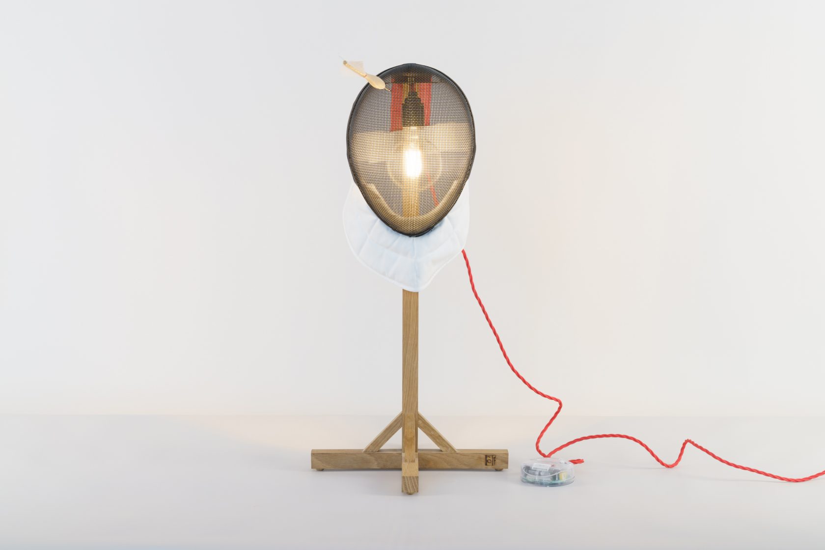 Wood stand, electrics, fencing mask
