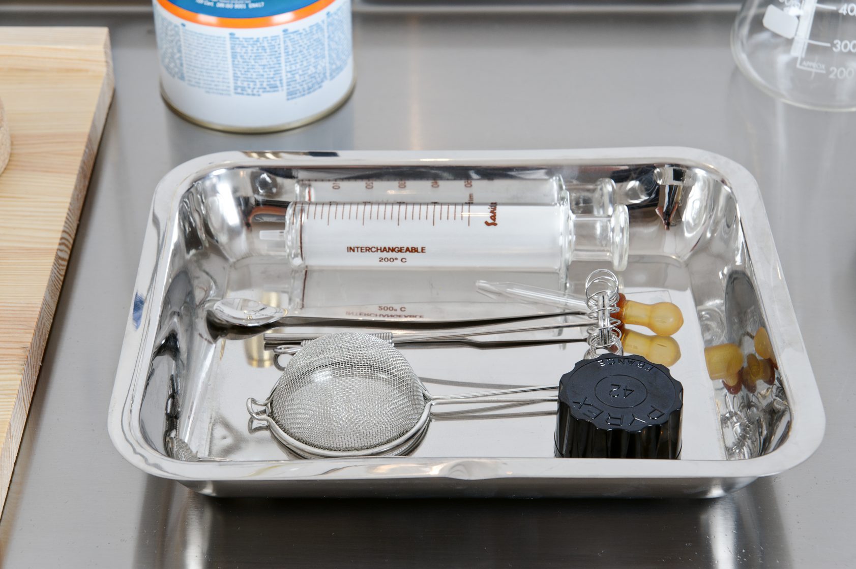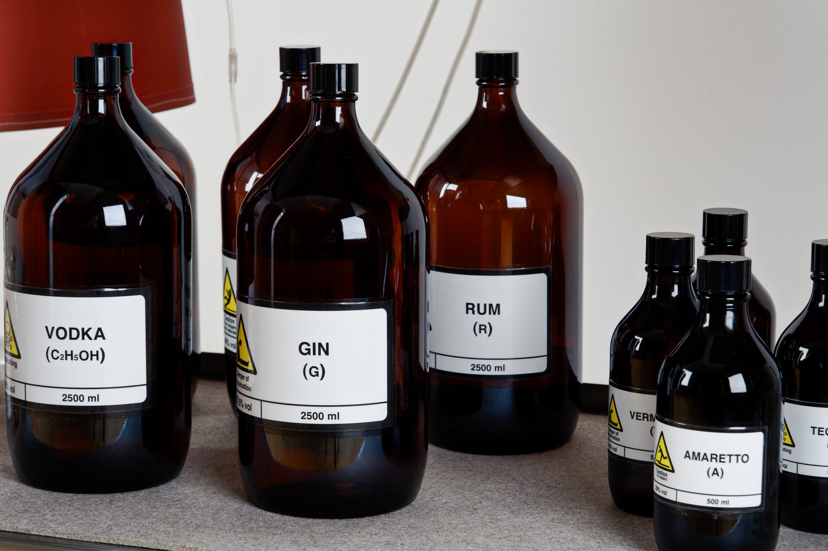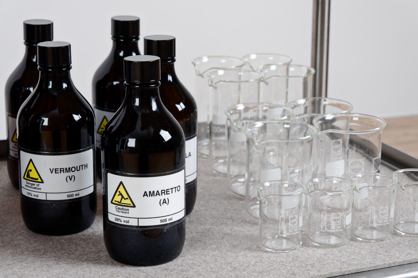 A playful and ironic homage to the art of cocktail making, this portable bar turns the process into a scientific pursuit, with custom-designed labels, a breathalyser, a Bunsen burner, latex gloves, a scalpel for dissecting fruit and measuring flasks to ensure absolute accuracy. Intoxi-lab was made for the event ‘Paint Me a Drink‘ at 20 Hoxton Square, showcasing established and emerging artists, with original commissioned artwork inspired by a particular drink or cocktail of their choice.