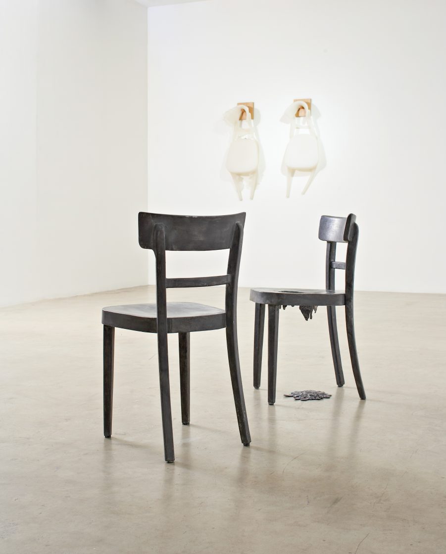 In the HorgenGlarus series, this classic chair, a purely functional piece of furniture, is being turned it in to a work with emotional resonance. Through constant reinterpretation, the chair has become an ideal blank canvas for ongoing experimentation’s with its form and materials (such as silicone, slate, rubber, resin), each taking on a new personality.