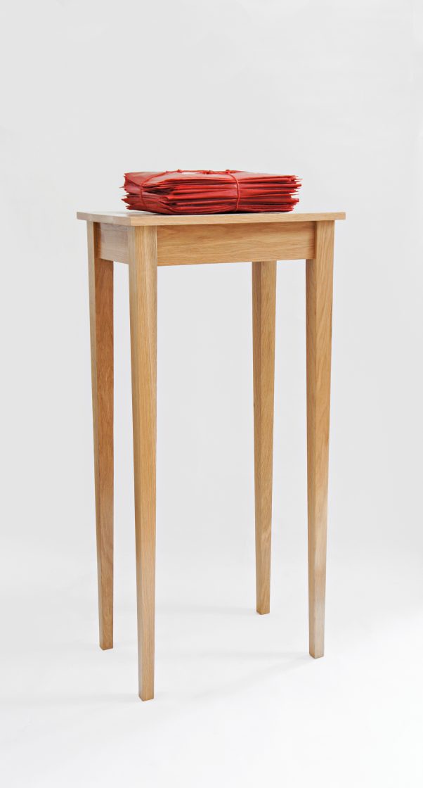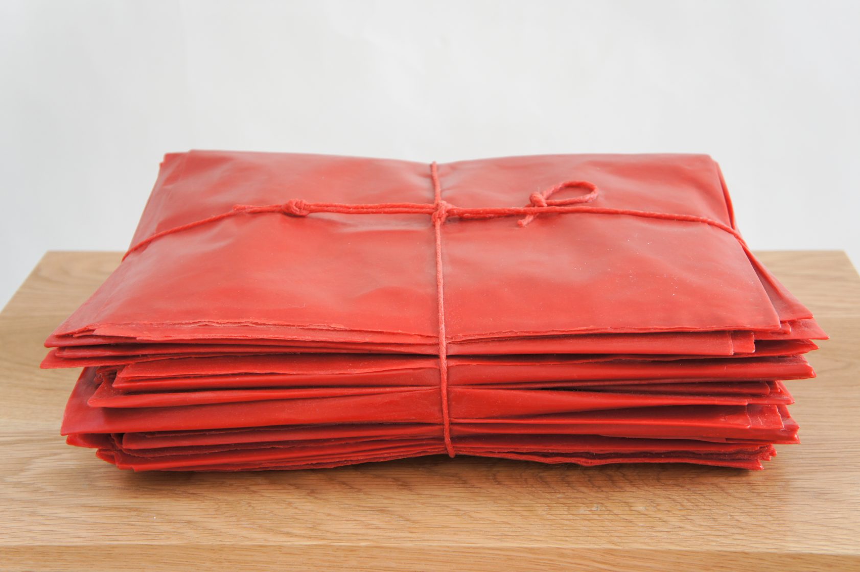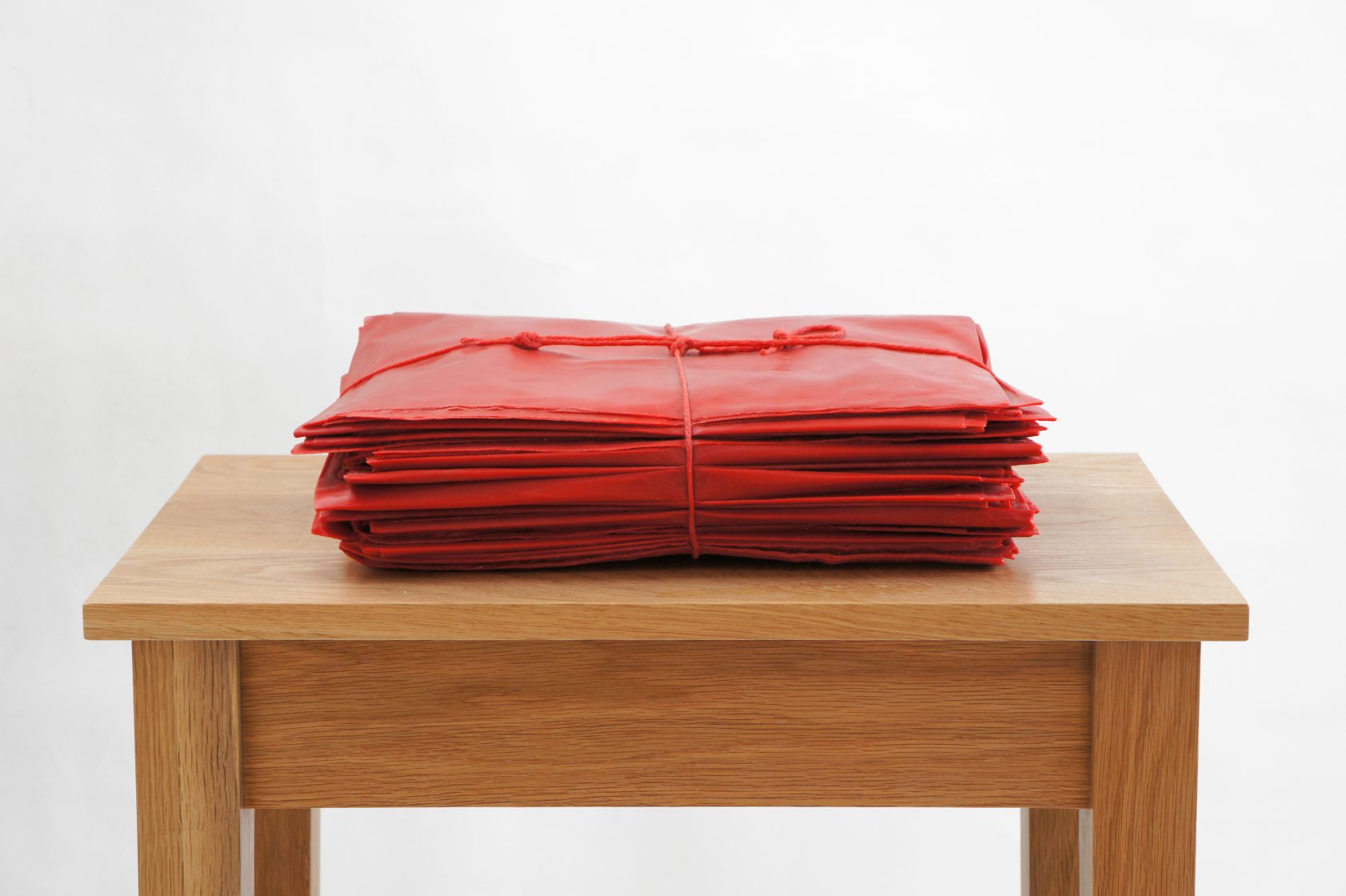 A cast of tied, stacked newspapers, cast in specially developed wax, gives a timeless permanence to a throwaway product. Its fine detailing illustrates a constant experimentation with removing everyday objects from their normal contexts, in order to create a work of affection, humour and poignancy.