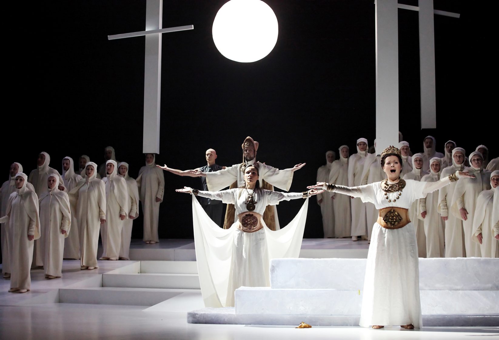 The production design for Bellini’s Norma, choreographed by Jean-Christophe Maillot, allowed for the creation of a very emotive set, working alongside Karl Lagerfield, who designed the costumes for this performance at the Opera de Monte Carlo.
