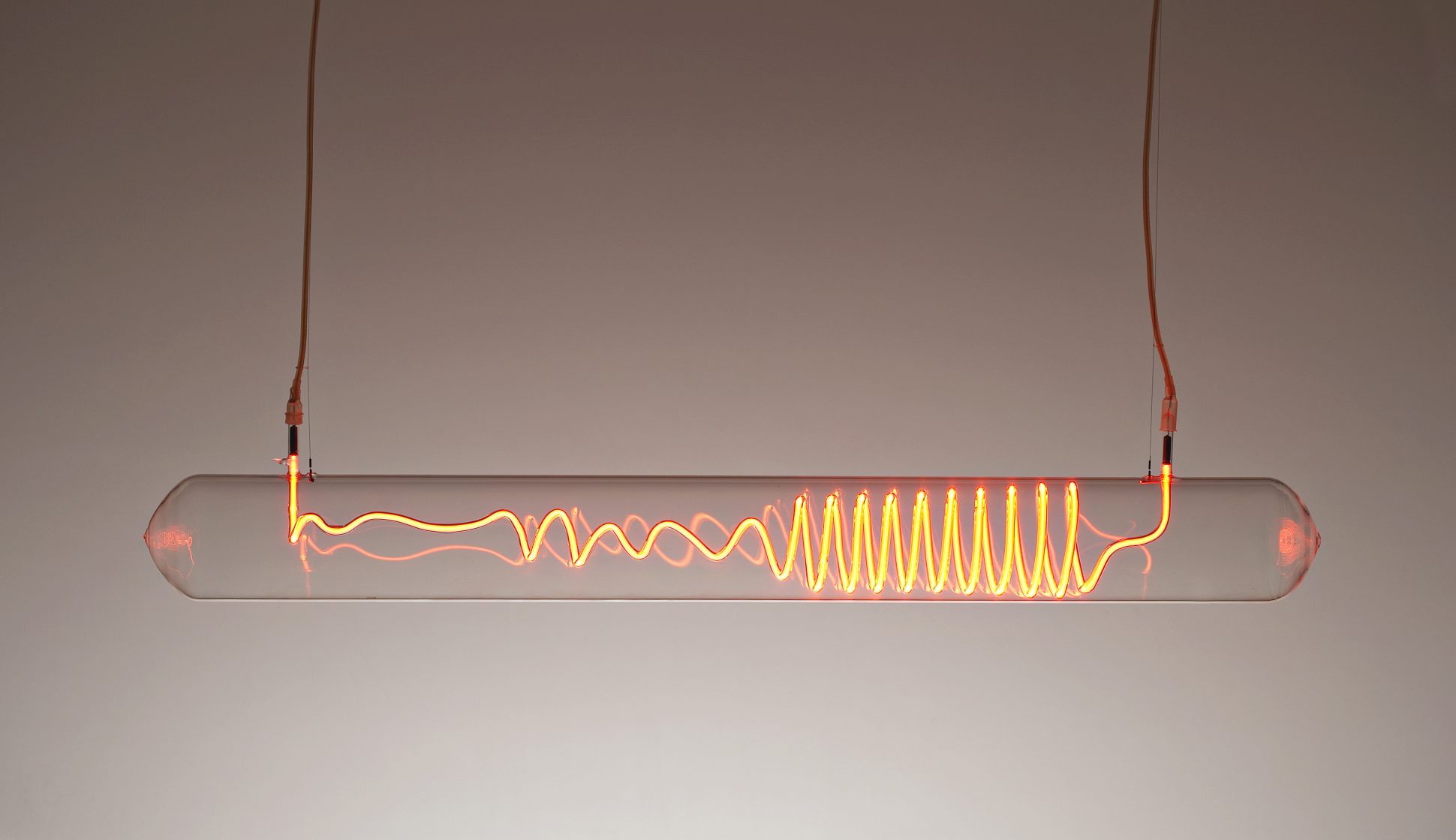 The piece forms part of the neon series where a scientific investigation of the limits of argon and neon are combined with the skills of an expert glassblower, to create works made from scientific glassware that challenge our preconceptions of what the gases are capable of.