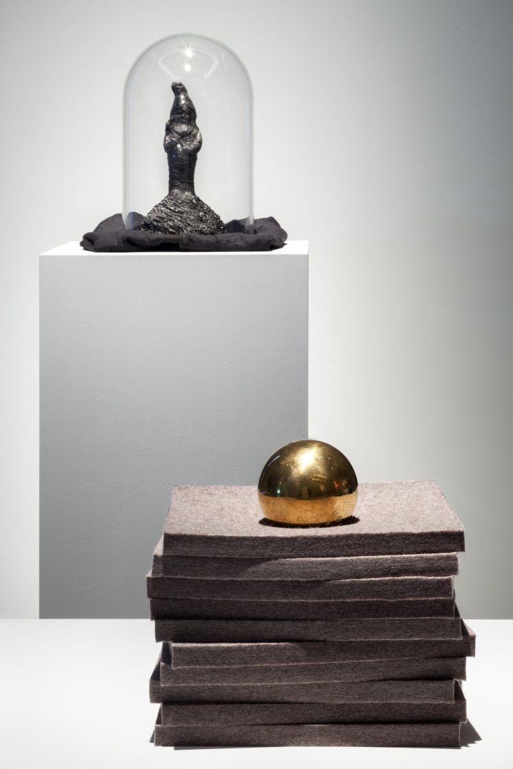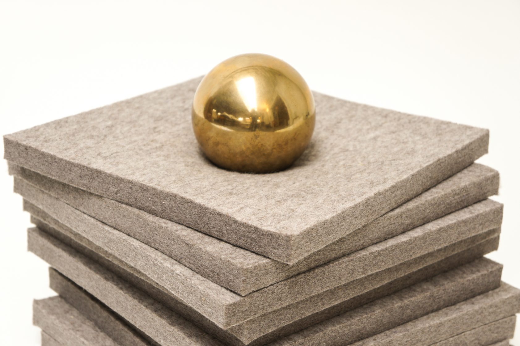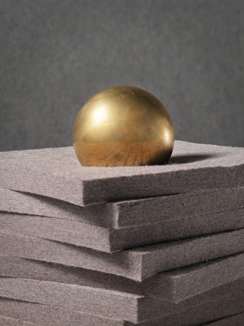 In ‘Schwermut’ (melancholy) Sachs explores the ‘weight’ and ‘burden’ of melancholy, with a sculpture that subjects a delicate piece of felt to the pressure of a solid brass sphere; evoking the spirit and conflict of Schwermut.