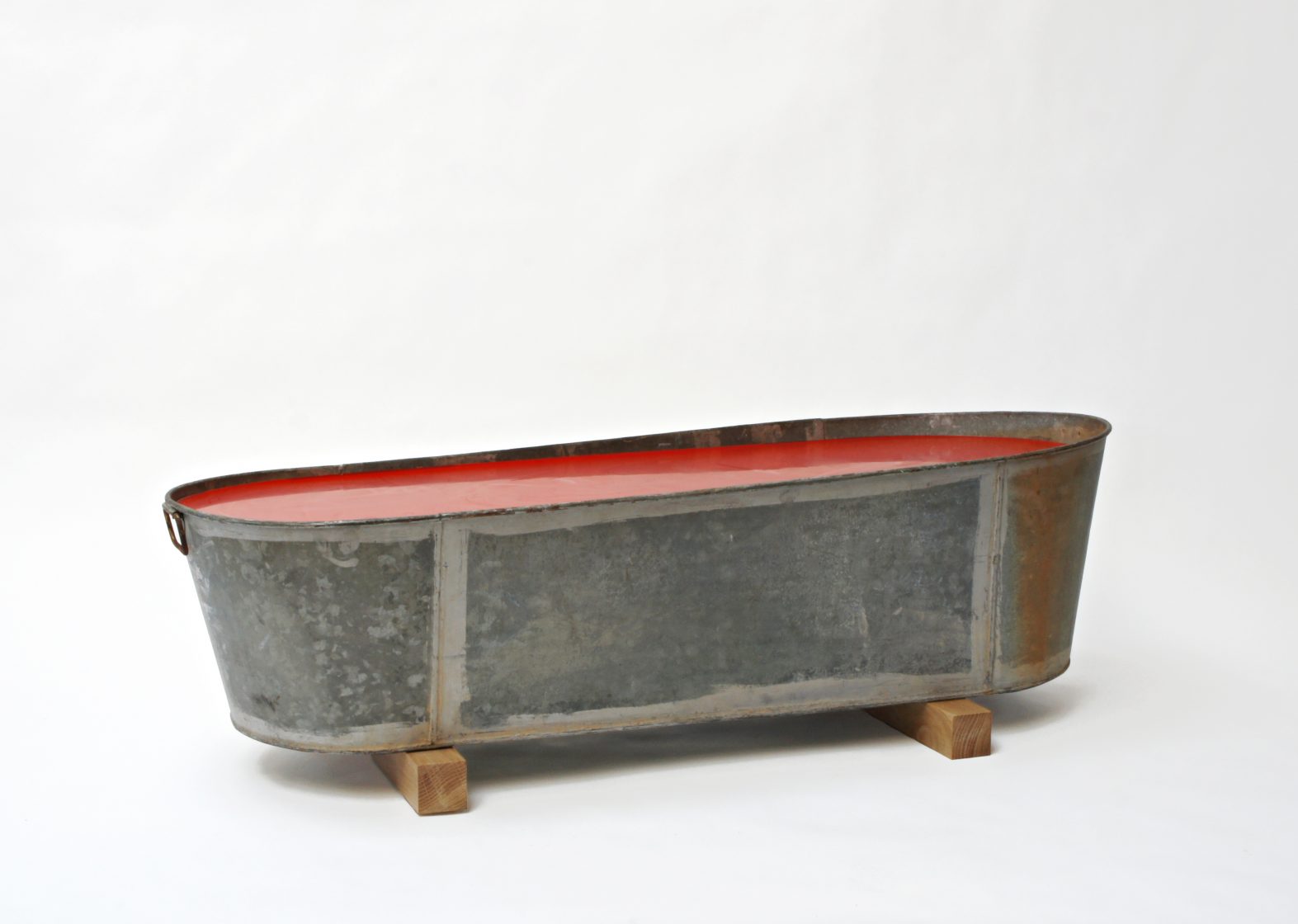wax, vintage galvanized steel tub, oak