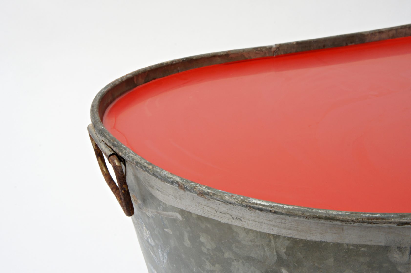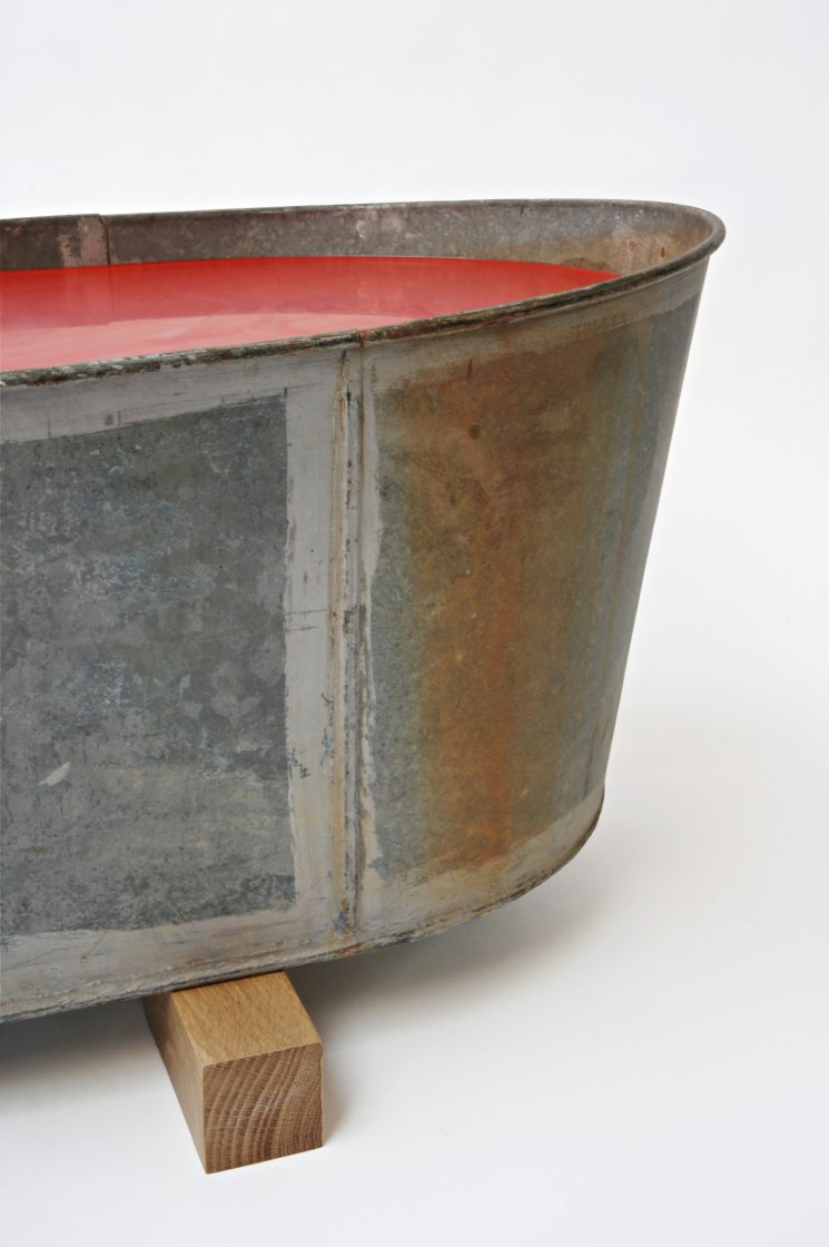 ‘take a dip’ continues the exploration of the relationships between found objects and the consequences of taking them out of their natural environment. A vintage, galvanized steel bathtub, filled with a specially developed and flexible wax, creates a surreal and inconceivable table surface.