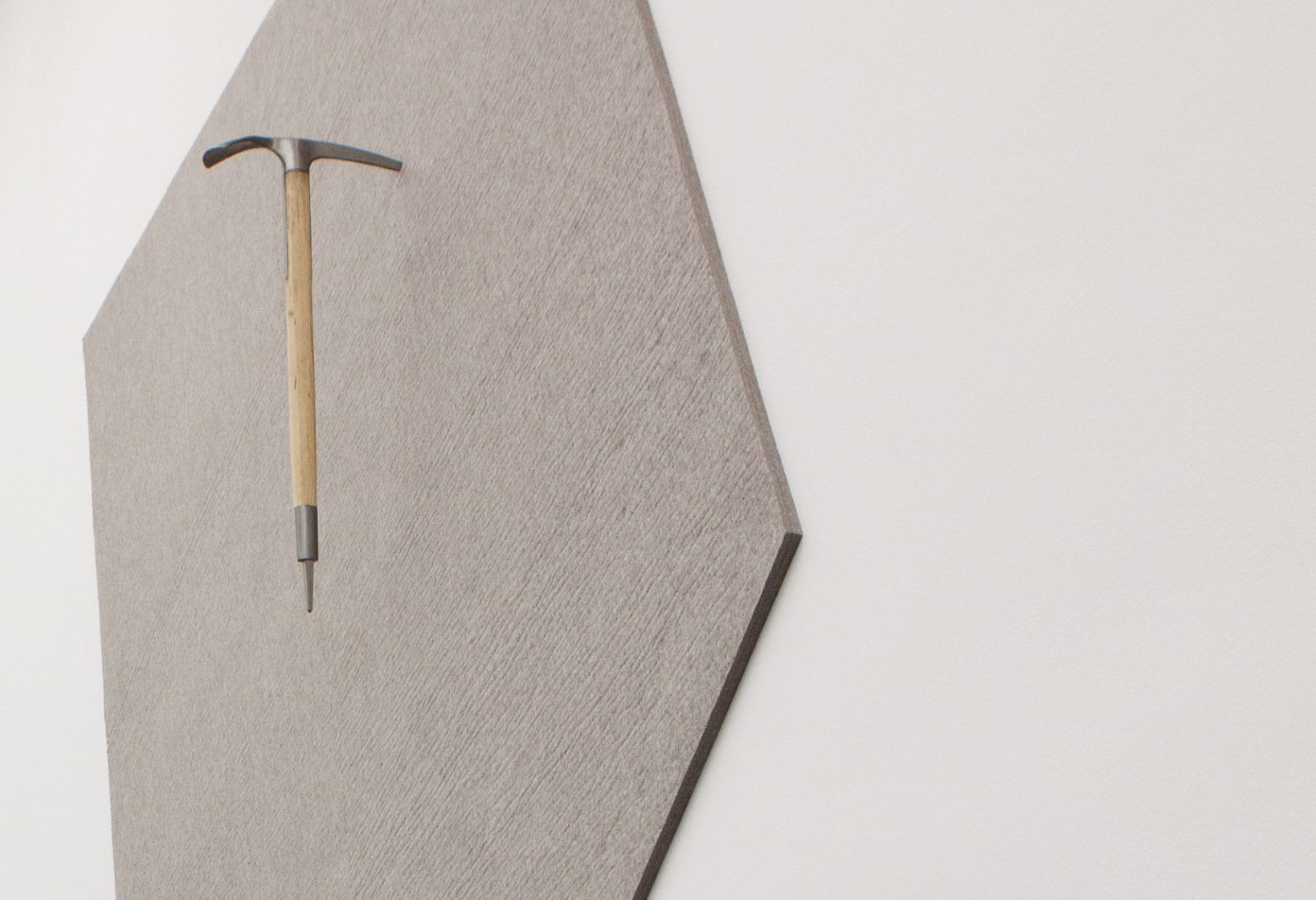 A handcrafted ice pick pierces a piece of felt.