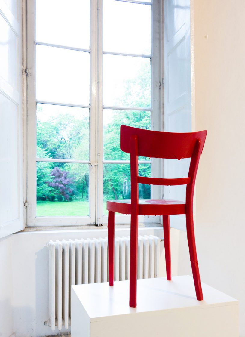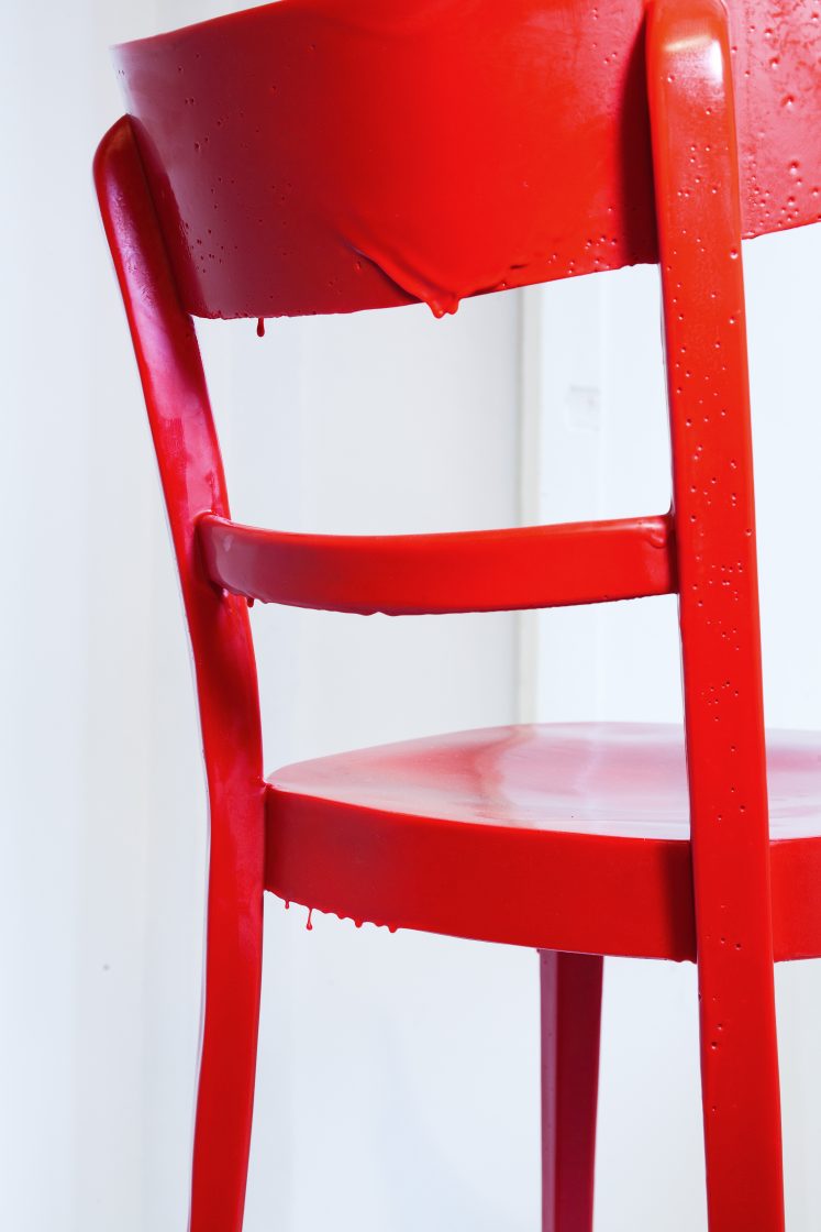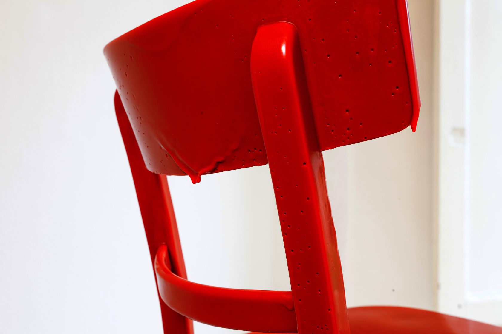 As part of the in pulse exhibition, a Köln chair is cast in red wax and then delicately ‘humanised’ through the melting, folding and bubbling of sections.
